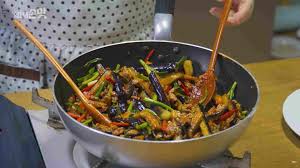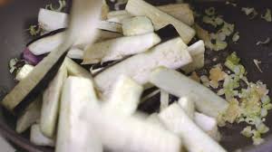 - 가지 볶기: 가지를 팬에 넣고 볶아주세요. 가지가 부드럽게 익을 때까지 약 5분 정도 볶아주세요.