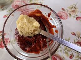 - 팬에 참기름과 다진 마늘을 더해 볶아 향을 낸 후, 고추장, 고춧가루, 간장, 설탕, 맛술을 순서대로 넣고 잘 섞어줍니다.